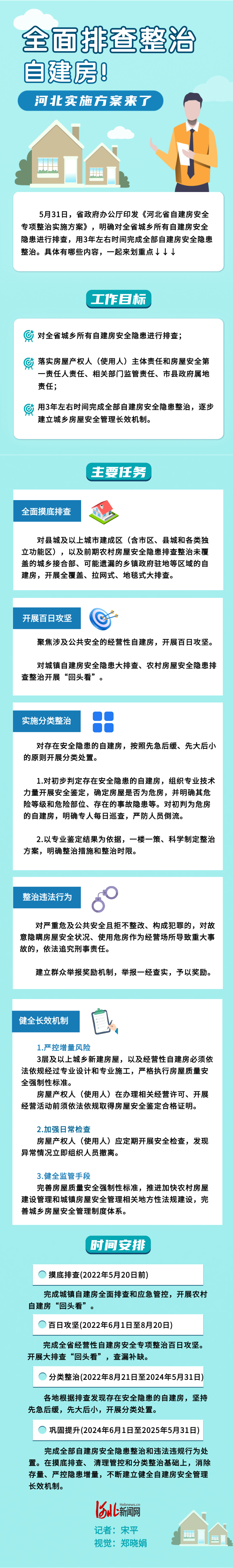 5月31日,省政府办公厅印发《河北省自建房安全专项整治实施方案》,明确对全省城乡所有自建房安全隐患进行排查,用3年左右时间完成全部自建房安全隐患整治。具体有哪些内容,一起来划重点↓↓↓