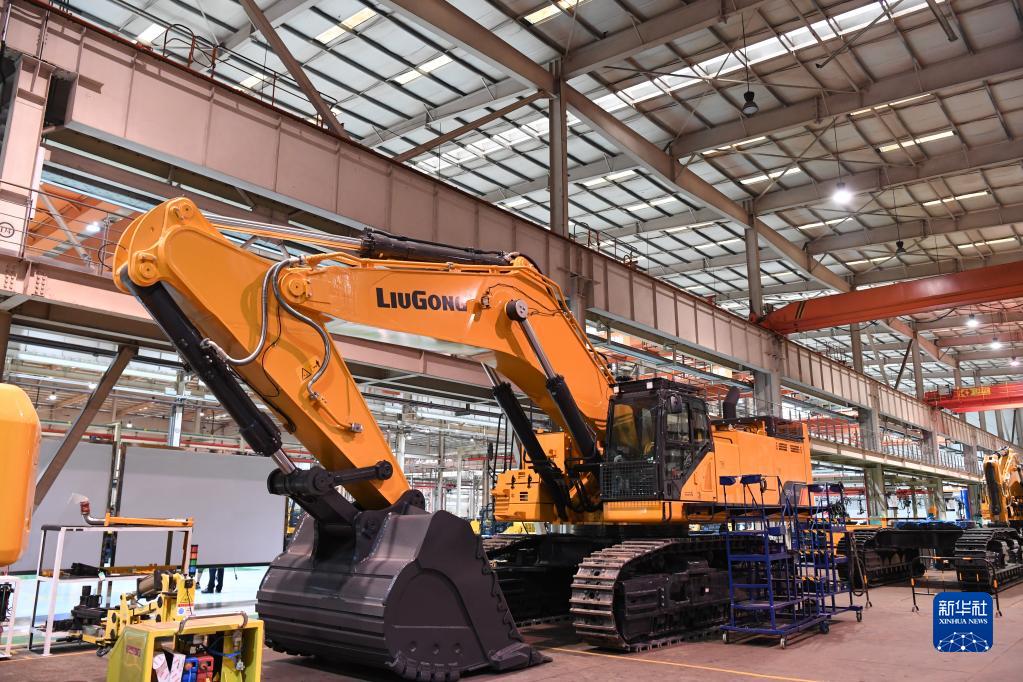 这是广西柳工集团有限公司生产厂房内正在组装的机械(2021年4月26日摄)。新华社记者曹祎铭 摄