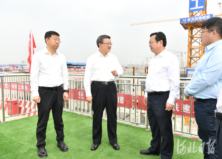 6月15日,省委书记倪岳峰在雄安新区调研。这是倪岳峰在启动区大学园图书馆项目建设现场,实地察看项目建设进展。河北日报记者赵海江 摄