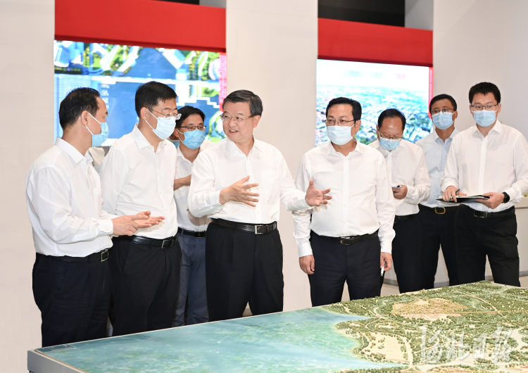 6月15日,省委书记倪岳峰在雄安新区调研。这是倪岳峰在雄安规划展示中心,现场研究雄安新区建设发展中的实际问题。河北日报记者赵海江 摄
