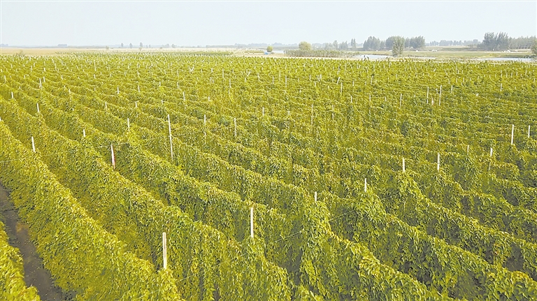 蠡县麻山药常年种植面积8至10万亩,总产量20多万吨,种植面积和产量居全国前列,已成为中国北方最大的麻山药绿色无公害产地。图为在潴龙河畔的沙壤土上种植的麻山药。(资料片)