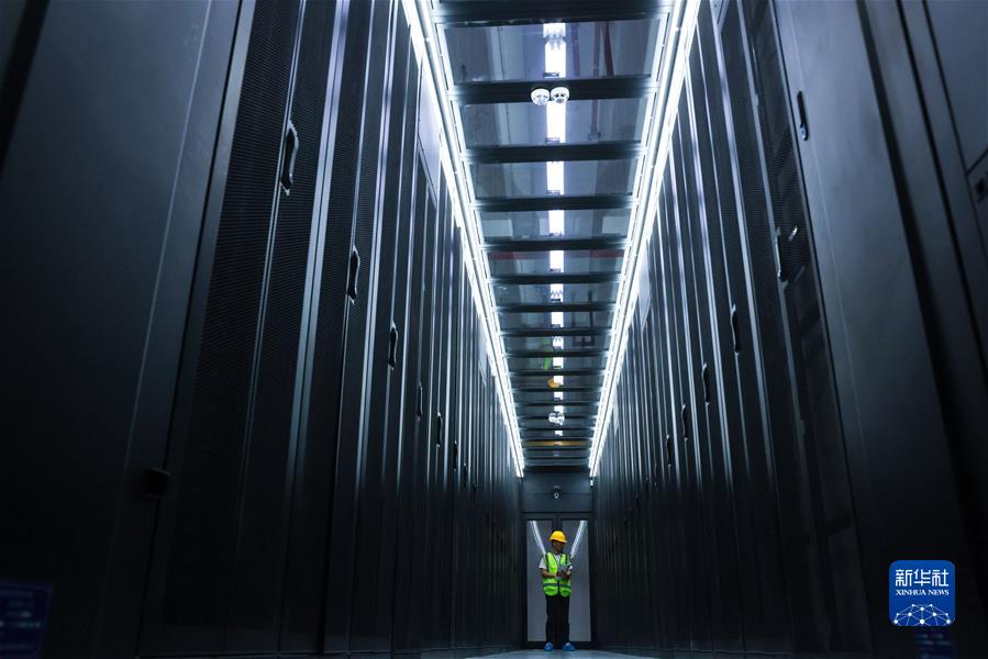 工作人员在中国移动贵阳数据中心机房内巡检(5月24日摄)。新华社记者欧东衢 摄