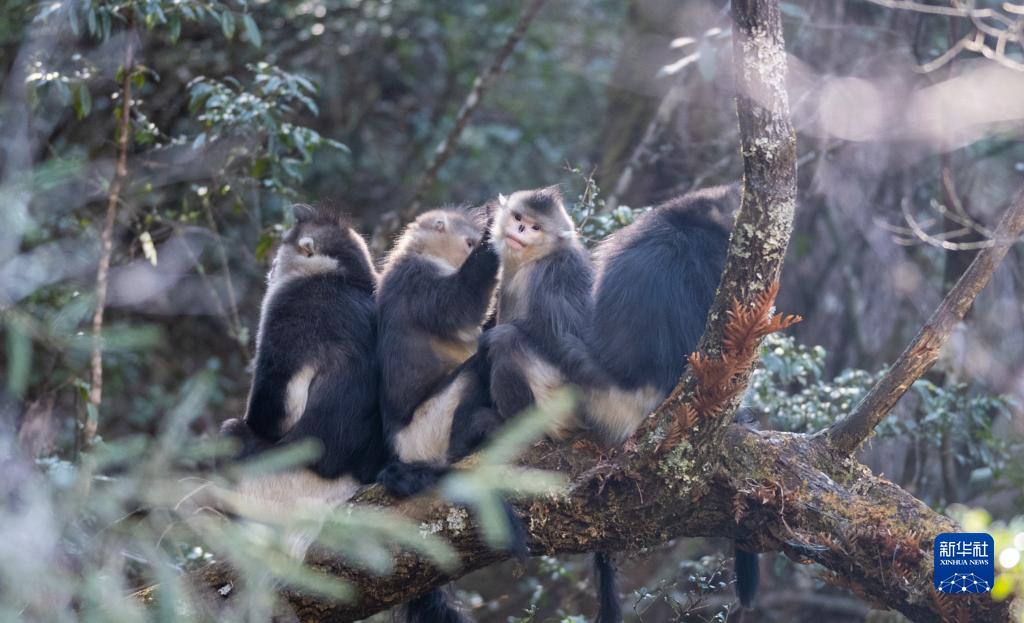 这是在云南白马雪山国家级自然保护区内拍摄的滇金丝猴(3月13日摄)。新华社记者王冠森 摄