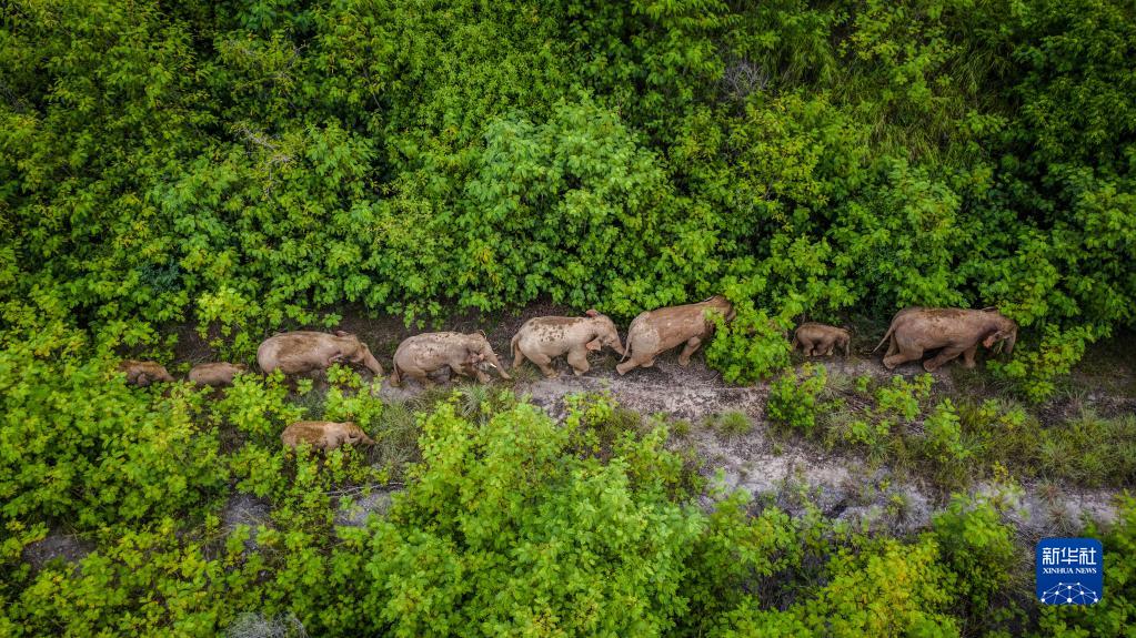 这是在云南省玉溪市元江县境内拍摄的象群(无人机照片,2021年8月9日摄)。新华社记者胡超 摄
