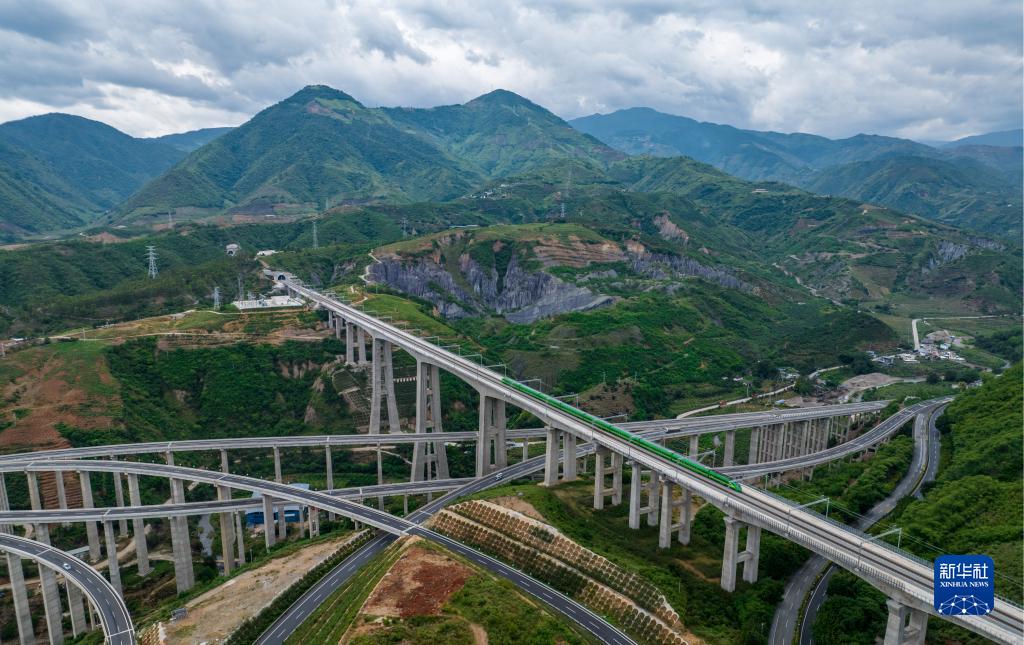 复兴号列车通过中老铁路元江特大桥(6月1日摄)。新华社记者江文耀 摄