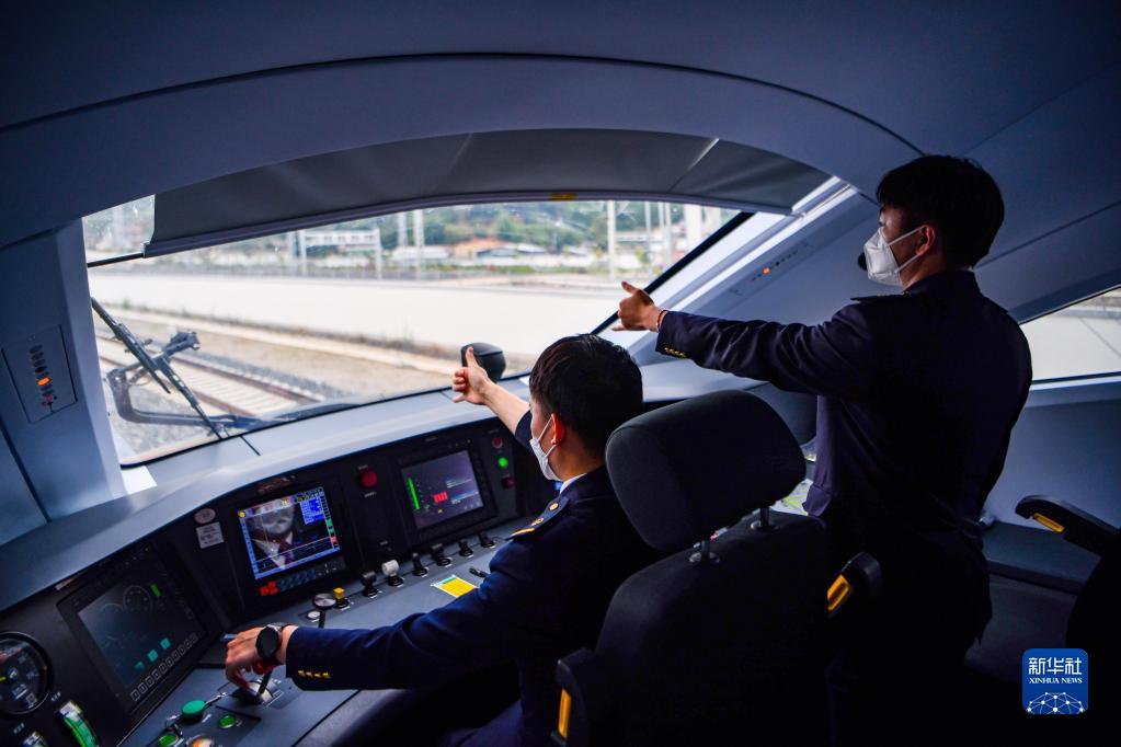 列车司机驾驶复兴号列车行驶在中老铁路上(6月1日摄)。新华社记者江文耀 摄