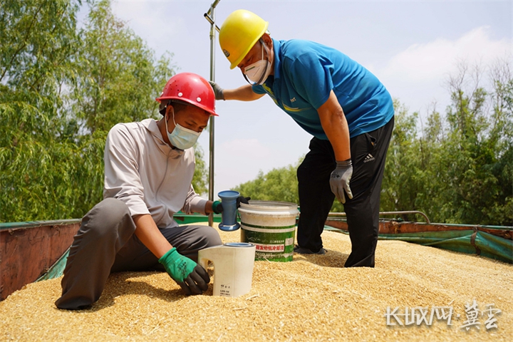 腾仓并库收储忙,确保颗粒归仓。资料图