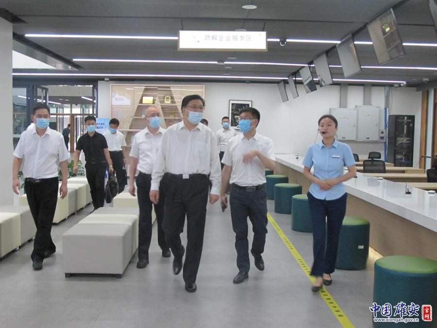陈峰陪同冯韶慧一行调研雄安新区政务服务中心。中国雄安官网封俊龙 摄