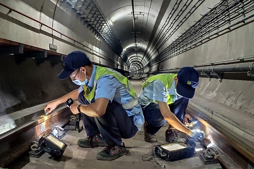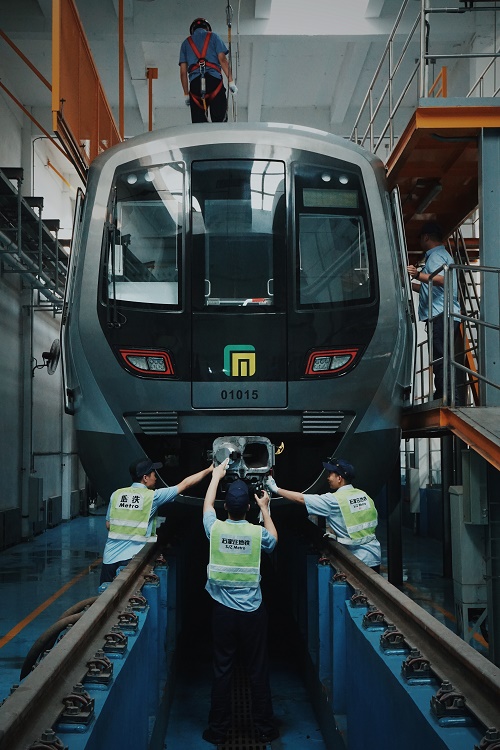 认真细致的日常检修,保障了地铁的安全运行。石家庄轨道集团供图