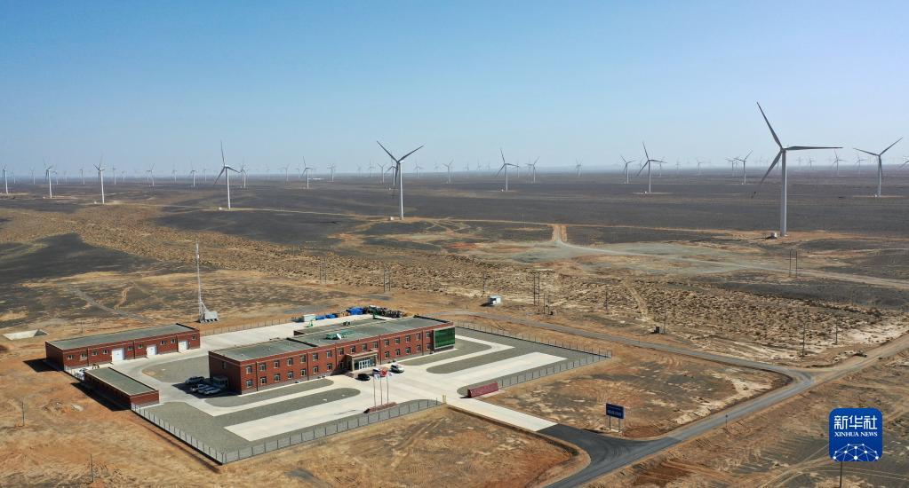 这是4月16日拍摄的甘肃省酒泉市境内的风电基地(无人机照片)。新华社记者陈斌 摄