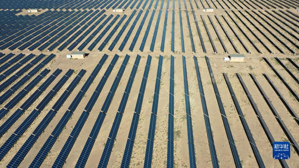 这是6月13日拍摄的甘肃省金昌市西坡光伏产业园区的光伏发电阵列(无人机照片)。新华社记者陈斌 摄
