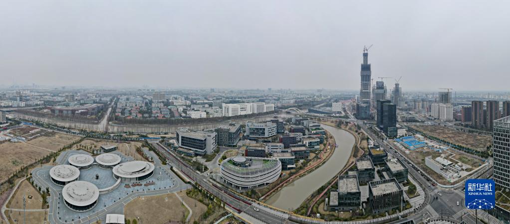空中俯瞰位于上海市浦东新区的张江智能岛(2月22日摄,无人机照片)。新华社记者方喆 摄