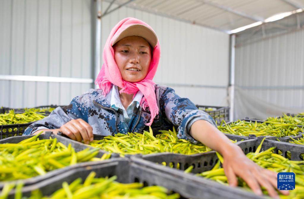 村民在宁夏吴忠市红寺堡区柳泉乡柳泉村晾晒黄花菜(2020年7月7日摄)。新华社记者杨植森 摄