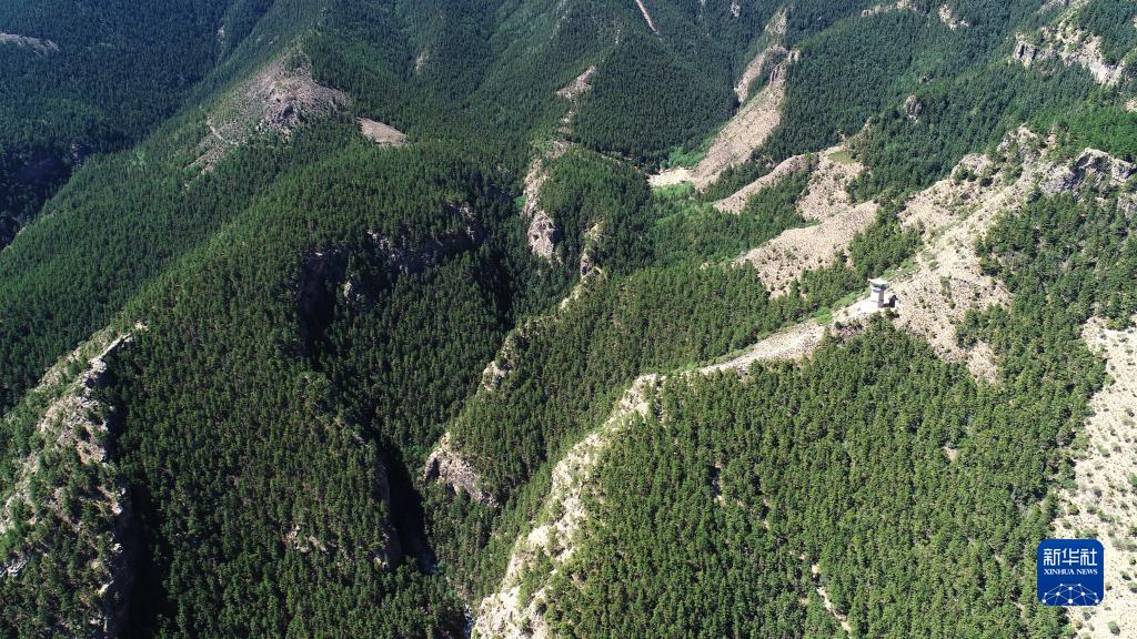 这是绿意盎然的贺兰山苏峪口国家森林公园(无人机照片,6月14日摄)。新华社记者王鹏 摄