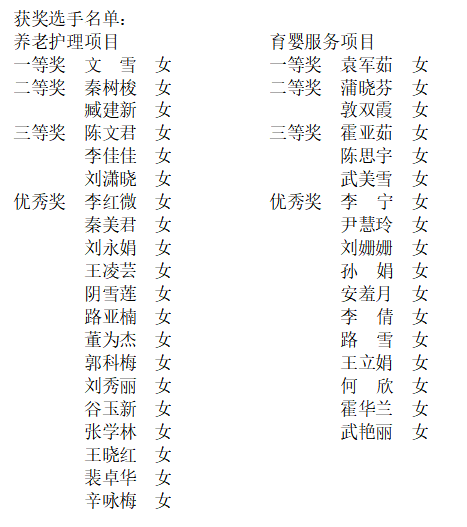 本次大赛由河北雄安新区管理委员会、河北省人力资源和社会保障厅主办,雄安新区公共服务局、河北省人才服务中心、中国华北家庭服务业人力资源市场、安新县人民政府联合承办。大赛围绕“一老一小”设有养老护理和育婴服务两个比赛项目,通过激烈的角逐共产生一等奖2名、二等奖4名、三等奖6名。大赛组委会对获得一、二、三等奖的选手分别授予奖牌和荣誉证书,并对为此次大赛付出辛苦工作的相关部门和企业分别授予特别贡献奖和优秀组织奖。