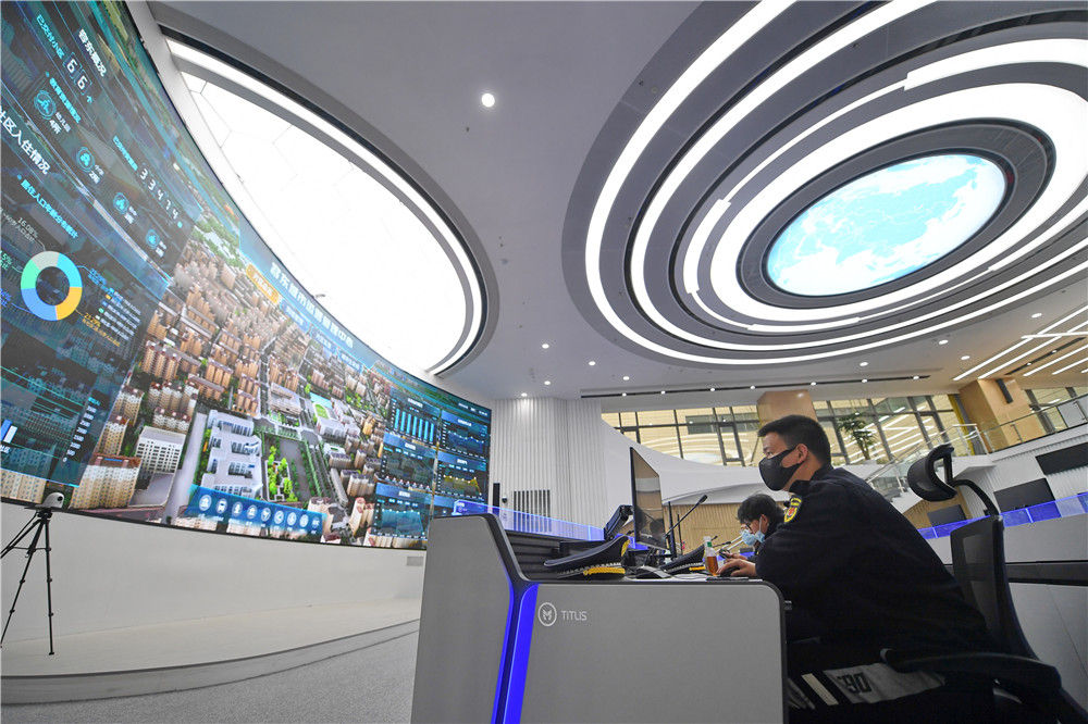 工作人员在雄安新区容东城市运营管理中心监管平台工作(2022年3月29日摄)。新华社记者 朱旭东 摄