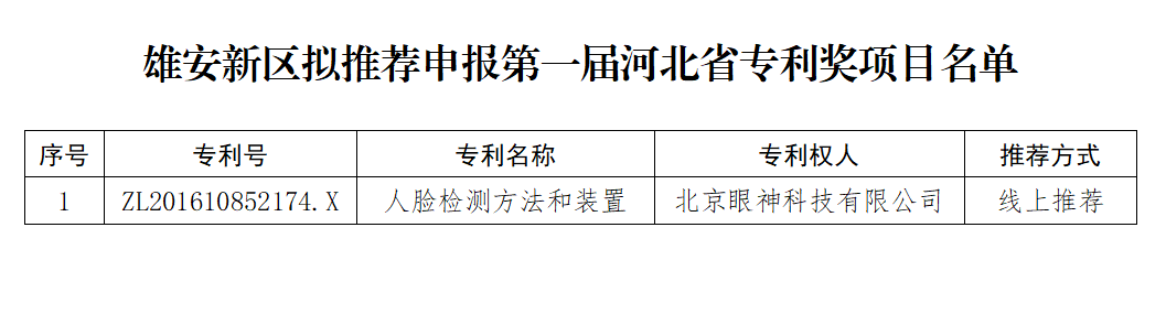 附 件:雄安新区拟推荐申报第一届河北省专利奖项目名单
