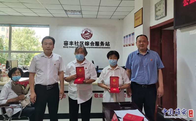 活动中,容丰社区党支部与中信银行雄安分行营业部党支部有关负责同志向“光荣在党50年”的两名老党员颁发并佩戴纪念章。老党员激动地表示,在中国共产党成立101周年之际获颁纪念章,感到十分神圣光荣,深切感受到了党对老党员的关怀。