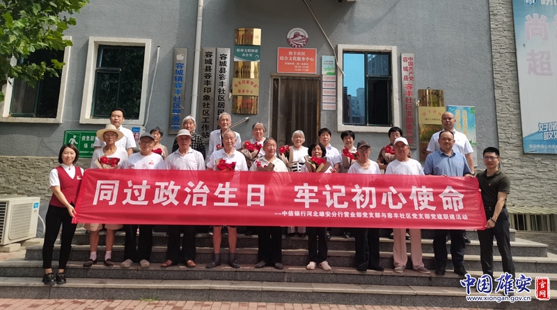 中国雄安官网7月2日电(封俊龙 实习生李梦家)为庆祝中国共产党成立101周年,激发全体党员的责任感与使命感,7月1日,容城县容丰社区党支部与“安心桥”党建联建成员单位——中信银行雄安分行营业部党支部共同开展“同过政治生日 牢记初心使命”庆“七一”党建联建活动,为容丰社区75周岁以上的老党员过集体“政治生日”。