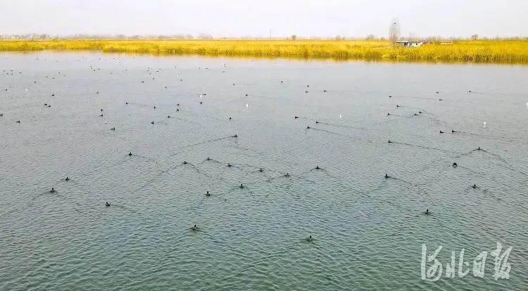 成群的水鸟在白洋淀中嬉戏觅食。河北日报记者赵海江 摄