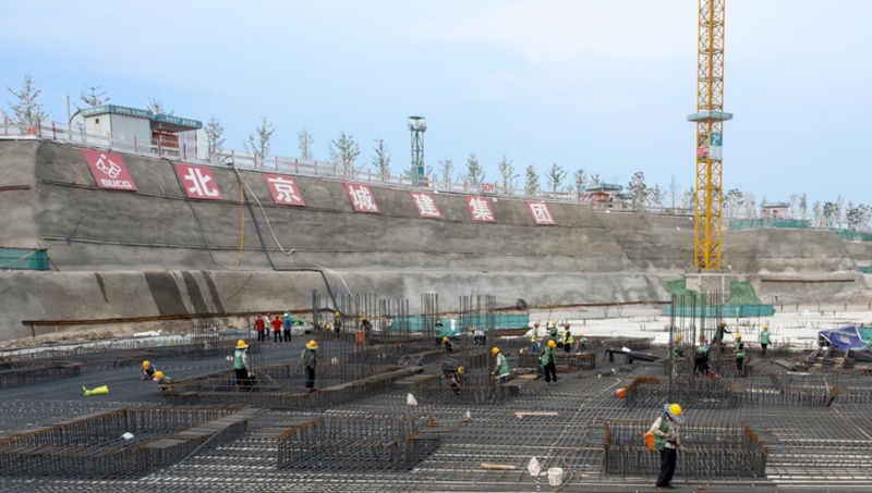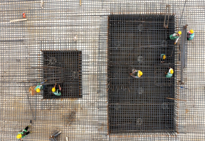 2022年7月5日,在雄安体育中心项目体育场施工现场,工人们正在加紧施工。河北日报记者 李东宇 摄