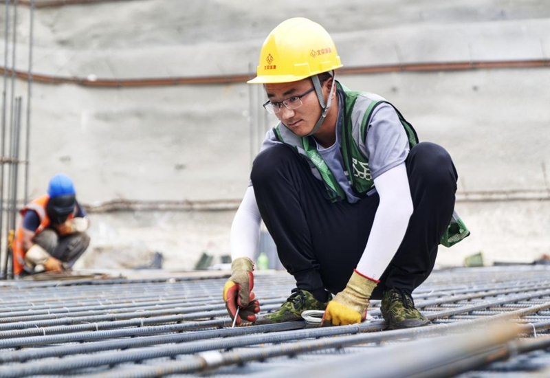 2022年7月5日,在雄安体育中心项目体育馆施工现场,工人们正在加紧施工。河北日报记者李东宇 摄