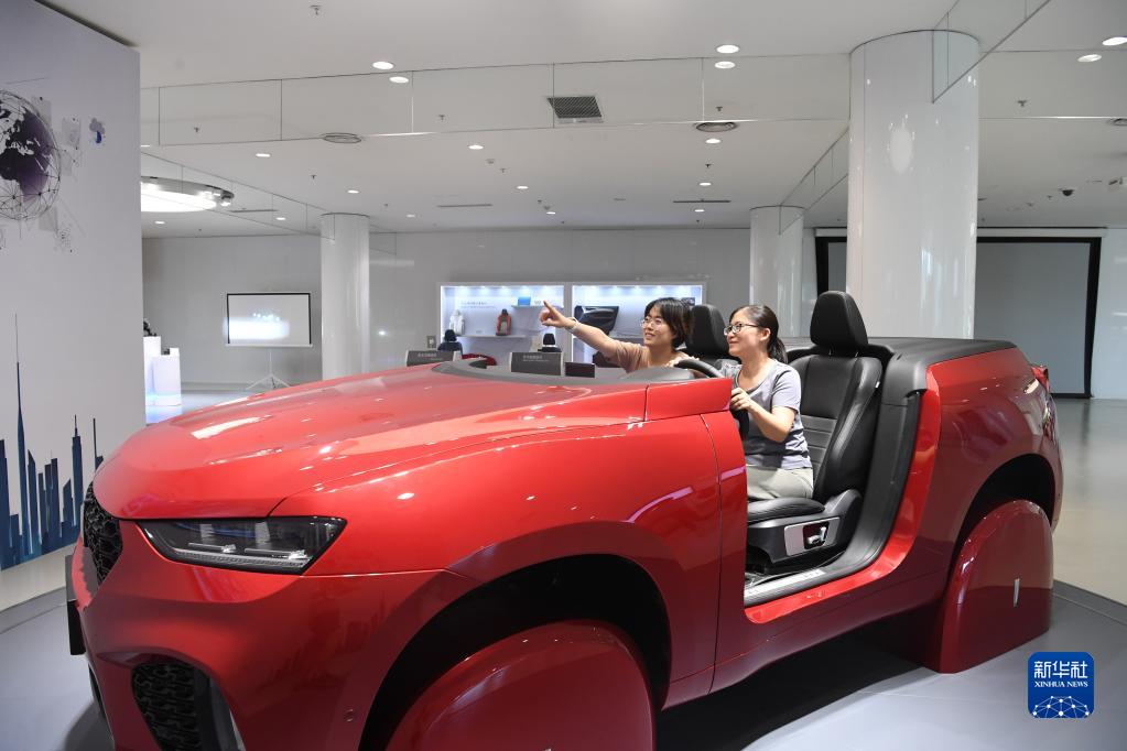 在河北保定市长城汽车哈弗技术中心,参观者在体验5G智能驾驶(2021年7月15日摄)。新华社记者朱旭东 摄