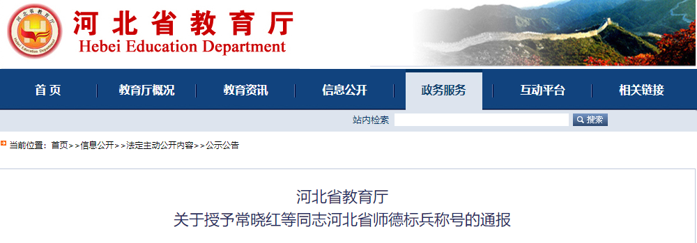 河北省教育厅最新发布关于授予常晓红等同志河北省师德标兵称号的通报。经研究决定,选树常晓红等400名同志为2022年河北省师德标兵,授予省师德标兵称号,现予以通报表扬。