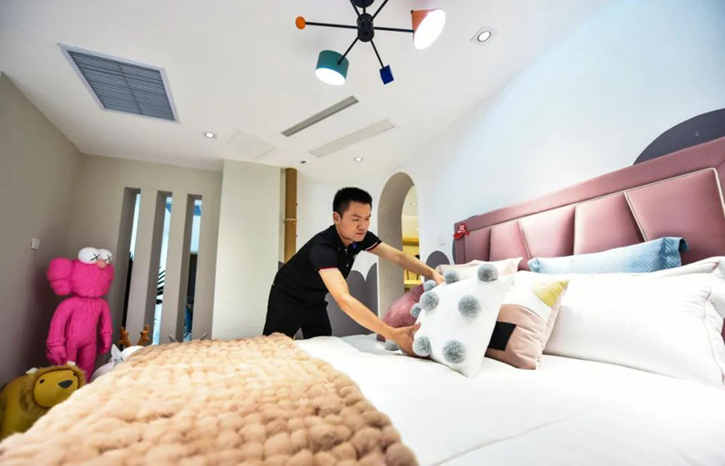 朱各庄产业园内的工作人员在整理展厅。河北日报记者李东宇 摄