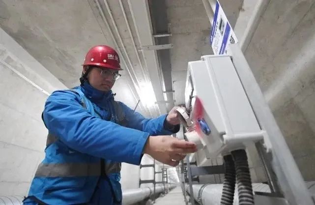 工作人员在雄安新区容东片区地下管廊调试物联网设备。新华社记者朱旭东 摄