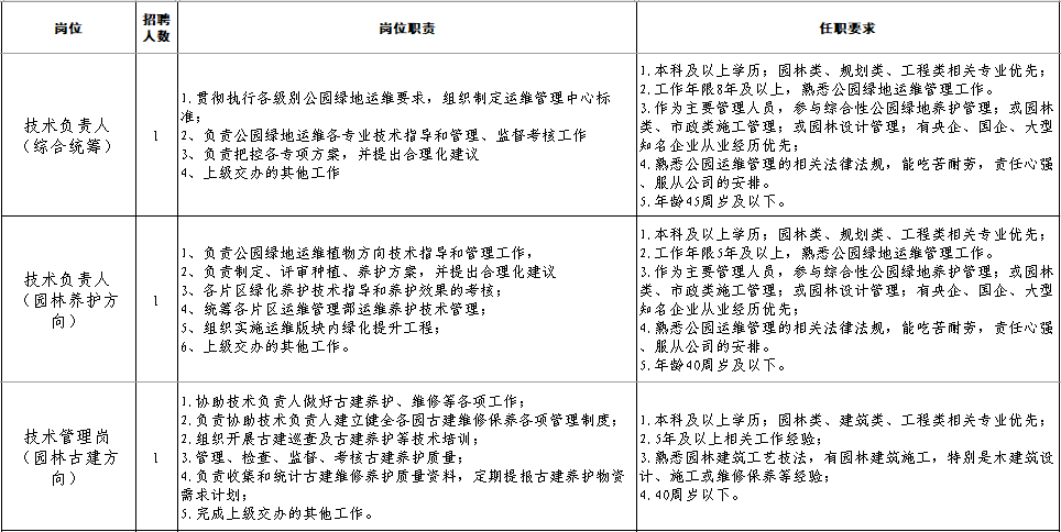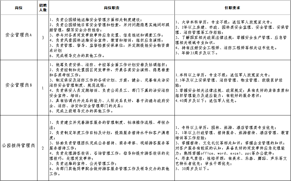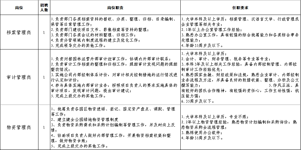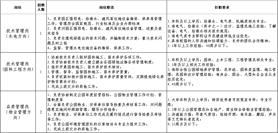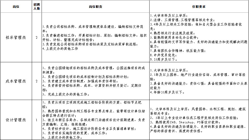 招聘岗位及岗位要求详见下表或招聘报名页面。