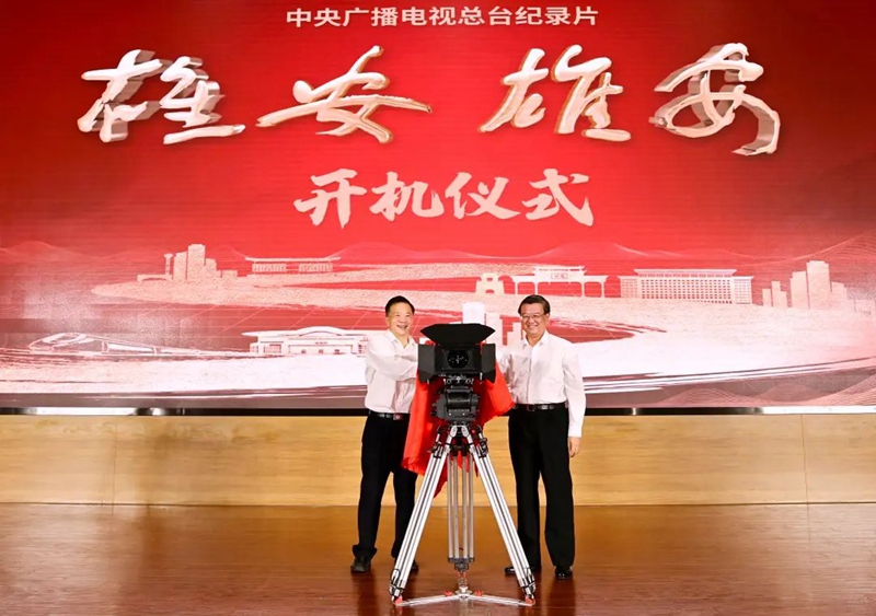 中宣部副部长、中央广播电视总台台长慎海雄与河北省委书记倪岳峰出席仪式并致辞,共同为纪录片《雄安 雄安》开机启拍。
