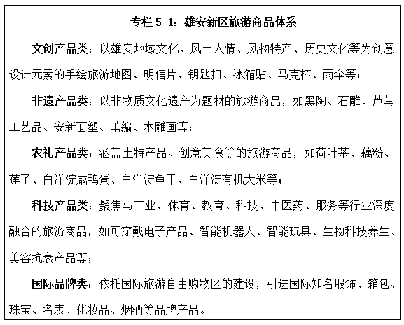 服务新区规划建设要求,瞄准未来旅游市场需求,挖掘新区优质资源,坚持中国元素、雄安特色,创新城市旅游、做强生态旅游、做精文化旅游、做优乡村旅游,引导发展标杆性旅游项目,培育一批旅游新业态,构建具有国际影响力的旅游产品体系。