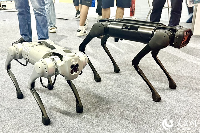 走进“智慧味”十足的数博会场馆,一只顽皮的机器狗便“跃”入眼帘。打滚、小跑、扑腾……在操控员的指挥下,机器狗灵活地摆出各色可爱的“造型”。