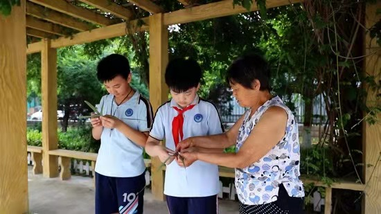 学校开发了延时服务特色超学科研究——苇编主题课程、白洋淀特色艺术认识和研究、小兵张嘎红色基因解码等。邀请村里会苇编手艺的老人指导教师和学生制作芦苇席、粽子等简单的手工艺品,在感受家乡乡土特色艺术的同时,培养对家乡的热爱和自豪感。