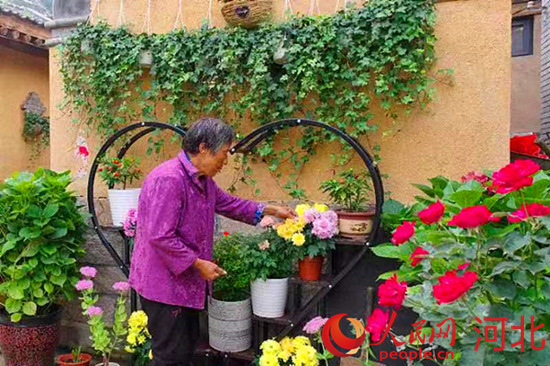 此时,河北省阜平县龙泉关镇骆驼湾村的一方院落里,依墙摆放的绣球、蔷薇、牡丹等各色盆栽鲜花也在争奇斗艳。77岁的唐宗秀说,每天为这些花草浇浇水、松松土是她最高兴的事儿。惬意的生活,也让她成为很多外地游客羡慕的对象。