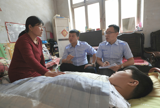 太平洋财险魏县支公司工作人员到防贫对象家中走访核查(资料图)。魏县县委宣传部供图