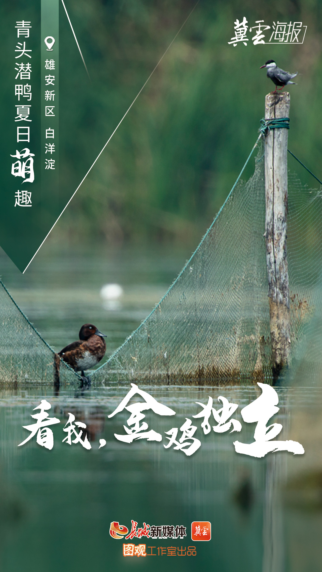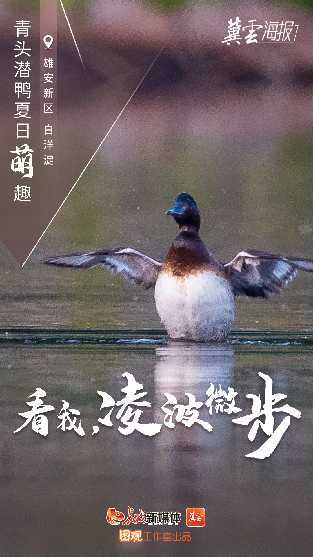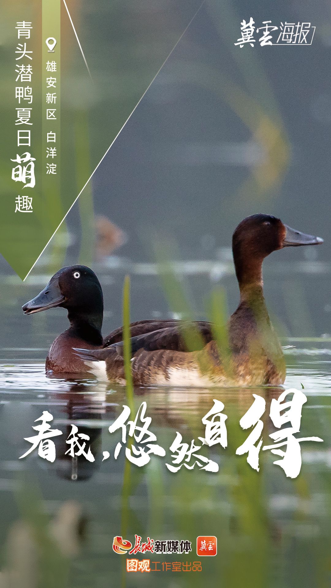 拍摄到青头潜鸭雌鸟与雏鸟活动