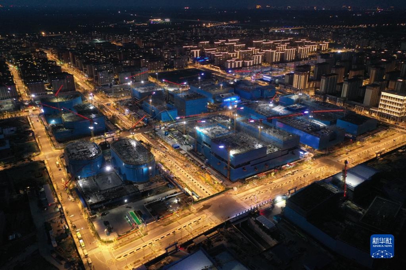 河北雄安新区容东片区雄安·电建智汇城项目夜景(7月28日摄,无人机照片)。新华社记者朱旭东 摄