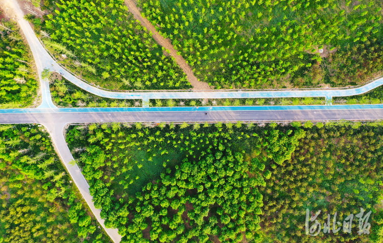 俯瞰“千年秀林”绿意浓浓。“千年秀林”为雄安新区建设打好蓝绿底色。