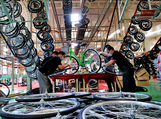 平乡县一家企业正在生产自行车。于丰涛 摄