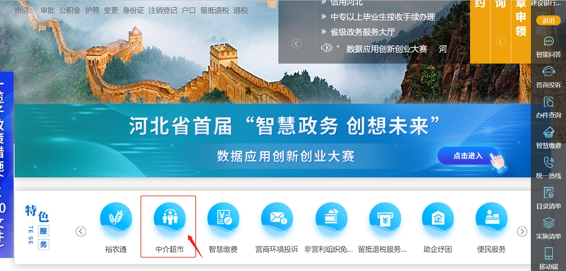 1.中介机构可登陆“河北省政务服务网”,(网址:http://www.hbzwfw.gov.cn/);