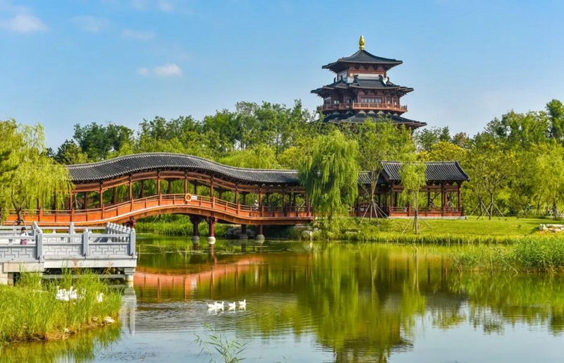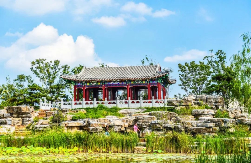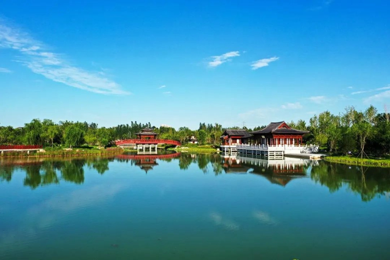 雄安悦容公园位于雄安新区北部容城组团,占地面积约160公顷,是贯穿容城组团南北向城市空间的重要生态景观廊道,也是容城组团公共活动集聚和城市功能展开的核心区域之一。以中国传统园林文化为核心,构建了“一河两湖三进苑、千年绿脉显九园,融绘古今画中来,中国园林呈经典”的空间意象,承担着城市绿色开发、生态共享、弘扬文化、追求艺术、传承经典、塑造特色等功能。