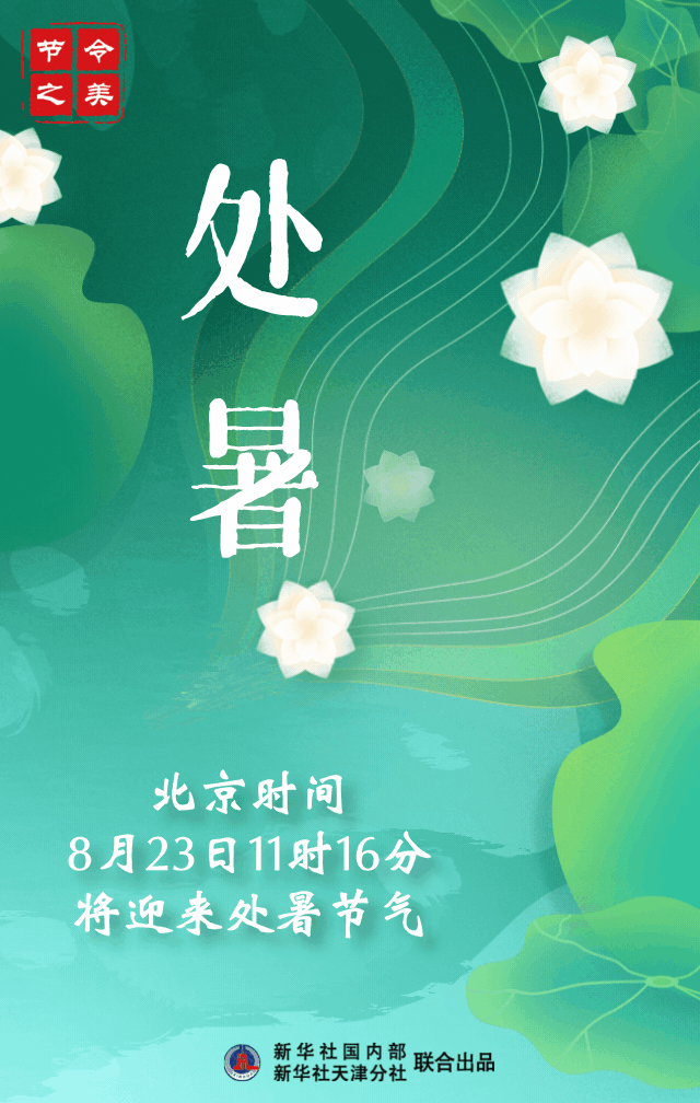 天津民俗专家、专栏作家由国庆介绍,公历每年8月22日至24日,当太阳到达黄经150度时,为处暑之始,它是二十四节气中第十四个节气,也是秋季第二个节气。处暑,即为“出暑”,是炎热离开的意思。这时,三伏天气已过或是接近尾声。今年的处暑正处于末伏的第九天。