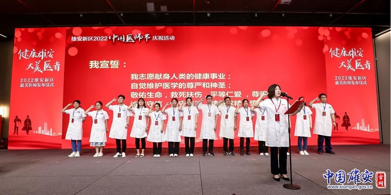 中国医师节当天,在雄安商务服务中心会展中心举办了雄安新区2022年“中国医师节”主题宣传活动。在“雄安新区最美医师”发布仪式上,与会领导为26名2022年度“雄安新区最美医师”“雄安新区最美帮扶医师”及提名奖获得者颁发了纪念杯,为14名新入职医师举行了“白袍授予仪式”和“集体宣誓仪式”。“雄安新区最美医师”获得者,雄县大营中心卫生院院长、副主任医师陈玉坤进行了事迹报告。中国医学科学院肿瘤医院原副院长、雄安新区医学会会长石远凯,首都医科大学宣武医院副院长、雄安新区医学会副会长李嘉分别结合自身成长经历,作了主题为“名医炼成记”的报告。