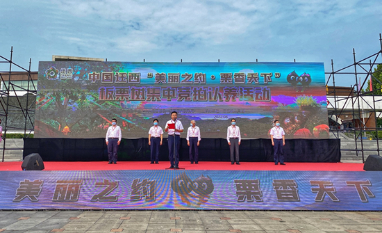 8月21日的中国板栗博物馆广场,锣鼓喧天,莺歌燕舞……第一届中国迁西“美丽之约·栗香天下”板栗树集中竞拍认养活动就在该广场举办。经过多轮叫价、激烈角逐,最终福珍全矿业、金信集团、亨旺集团、还乡河旅游公司、外国友人吉米等企业和个人以294000元的总价,分别将五株树龄500年以上板栗古树的认养权收入囊中。
