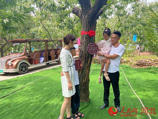 认养人在为自己认养的板栗树挂牌。人民网付兆飒 摄