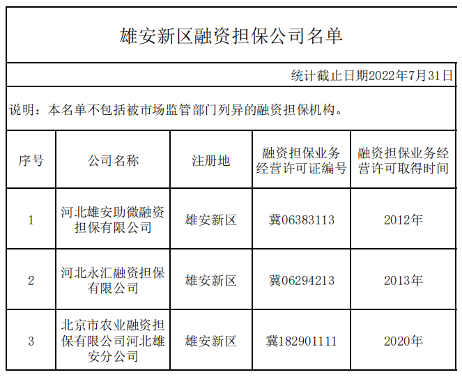 2.雄安新区融资担保公司名单