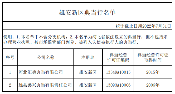 3.雄安新区典当行名单