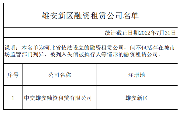 4.雄安新区融资租赁公司名单
